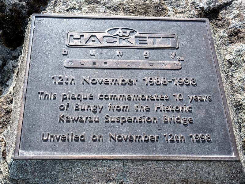 Karawau Suspension Bridge Bungy plaque